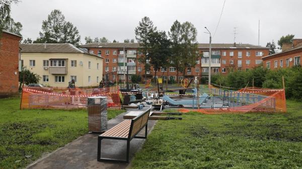Ранее в дворе расширили проезды и парковки, обновили асфальтовое покрытие и отремонтировали уличное освещение. Сейчас рабочие монтируют игровые конструкции, после чего будет уложено резиновое покрытие.